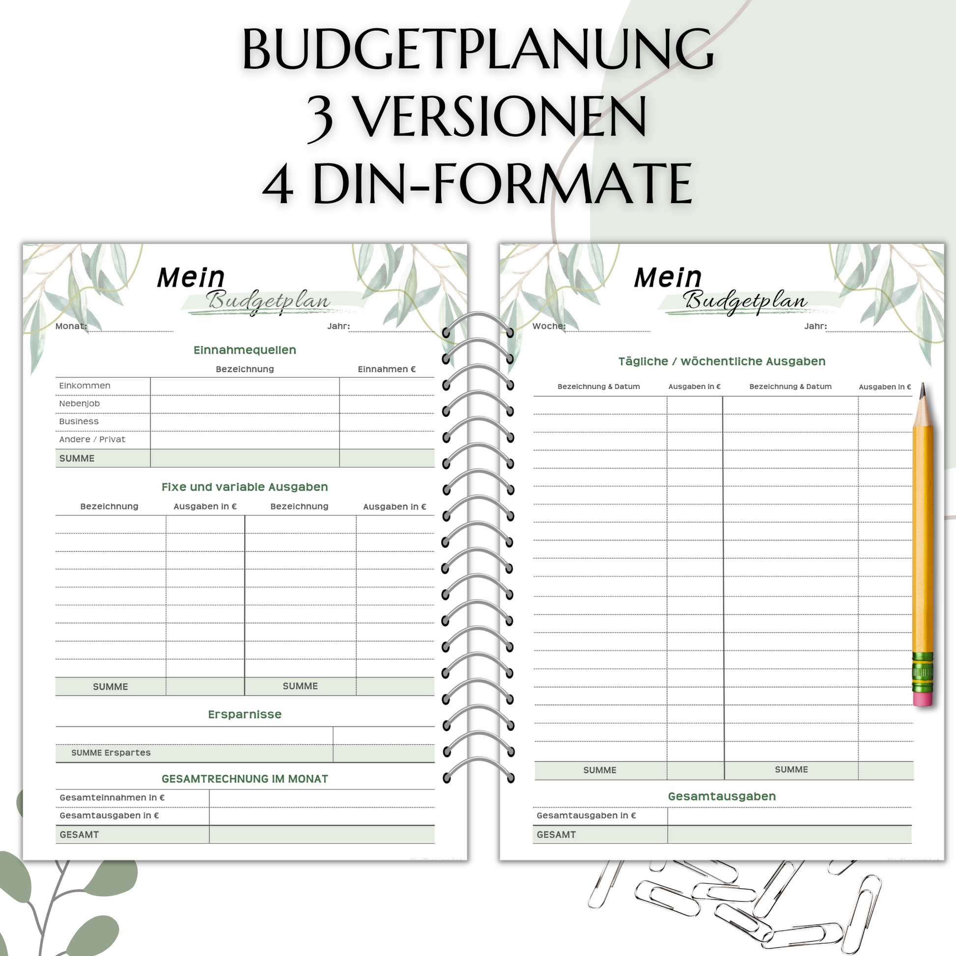 A4 Größe 21,0cm x 29,7cm - passt perfekt in ein Budgetbuch oder eine Flügelmappe, Klarsichtfolie etc...