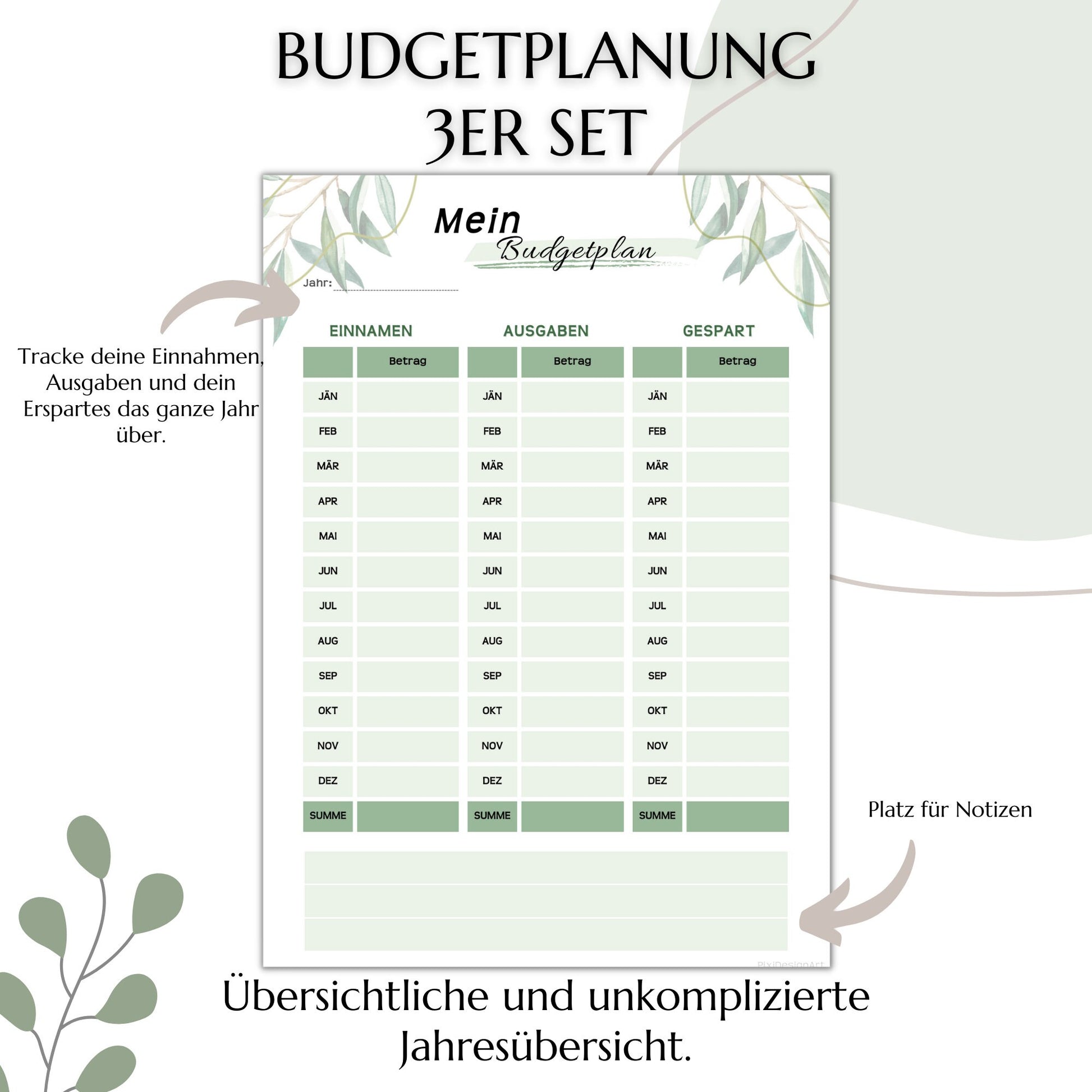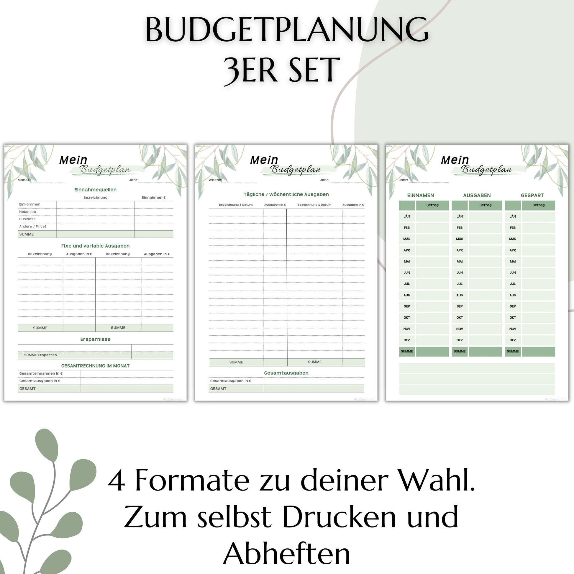 📌Drei Versionen: Monatlicher Finanzüberblick, tägliche bzw. wöchentliche Finanzübersicht und Jahresübersicht gesamt